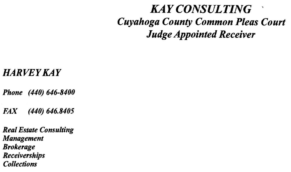 Harvey Kay has served as a Court Appointed Receiver, at both the county and federal levels. The Receiverships have consisted of various types of real estate located in varied levels of neighborhoods. Known for reasonable Receivership rates and the ability to manage and upgrade properties with minimal financial outlay. Handling lease collections, rentals, and evictions, also bringing properties up to marketable standards. Harvey Kay has been honored by the Cuyahoga County courts for his work as a Grand Jury foreman.